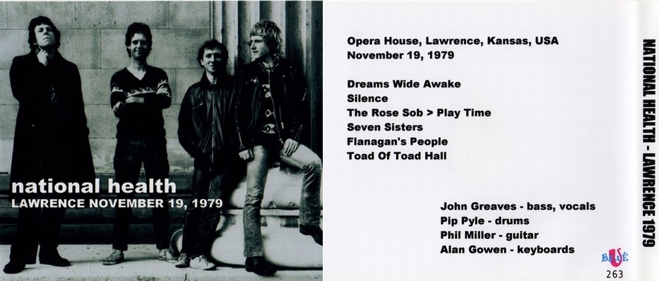 NATIONAL HEALTHの曲としては一曲目だけが、2ndアルバムに収められているだけで後半の曲はAlan Gowenが亡くなった後にNATIONAL HEALTH名義での追悼盤「DS.al coda」に収録されることになる。それを完成形とするならば、ここでの演奏は、それらの製作過程でもある。実際、アレンジはかなり変わっている。しかもサウンドボード音源だというのだから驚きだ。このレアな音源がこの音質で楽しめるのならば文句なし。